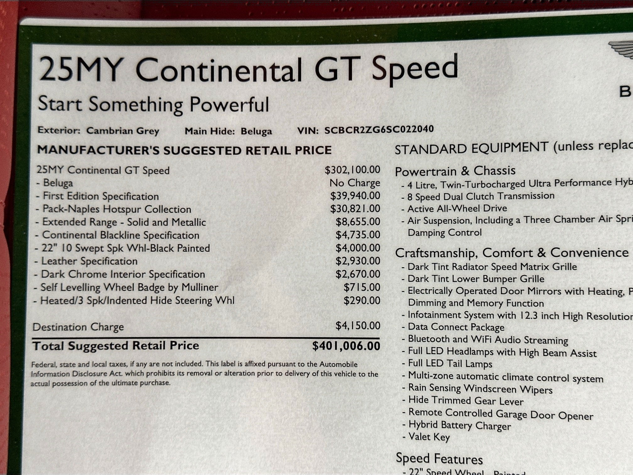 - MSRP: $401,006