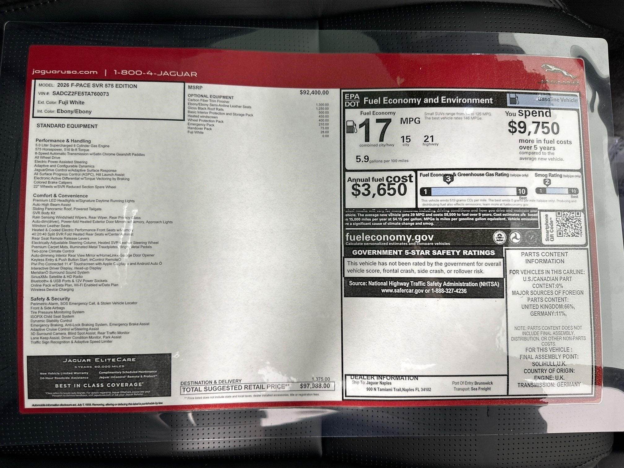 - Vehicle Name: Jaguar F-PACE
