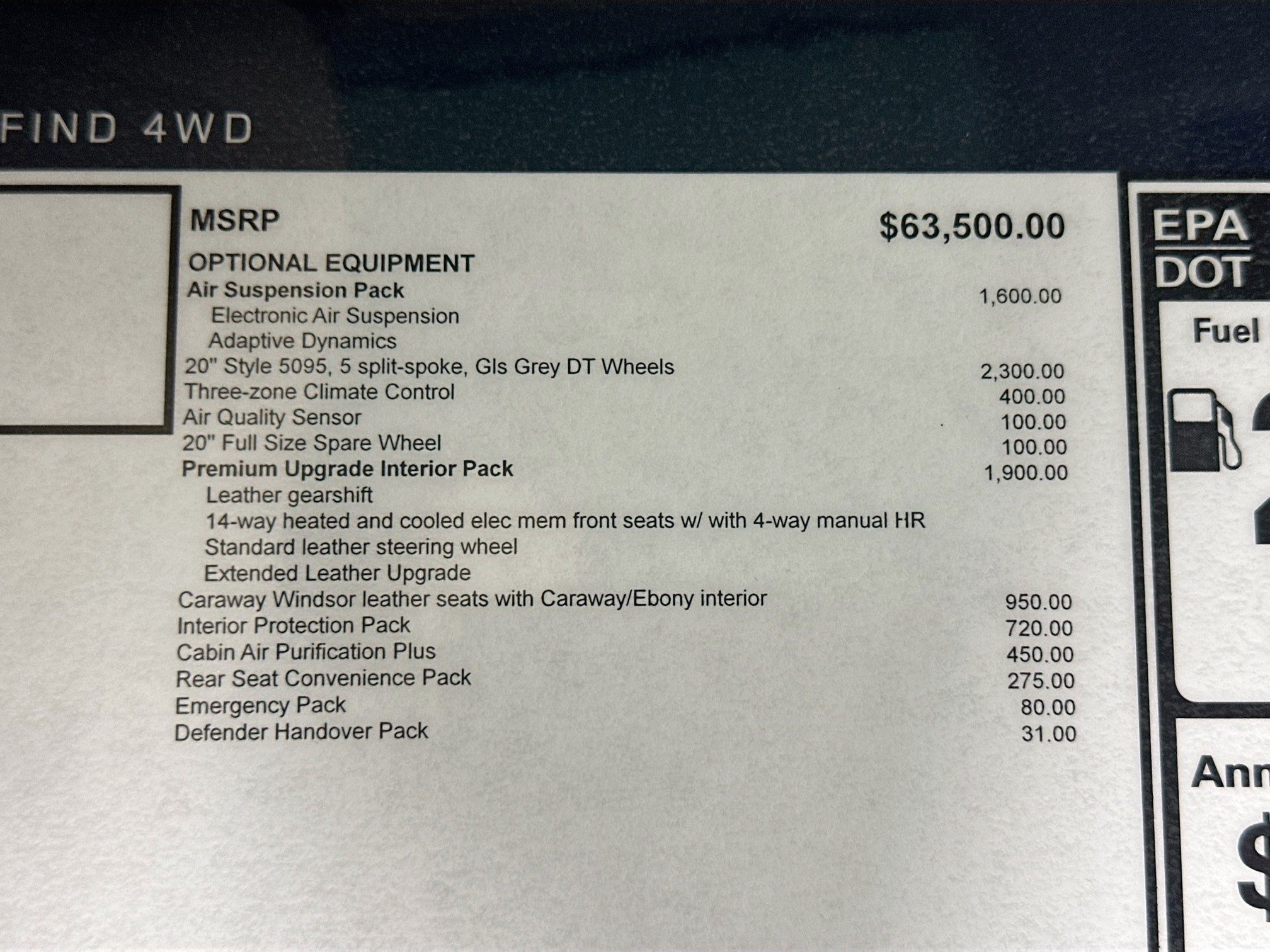 - Tires: 255/65R19