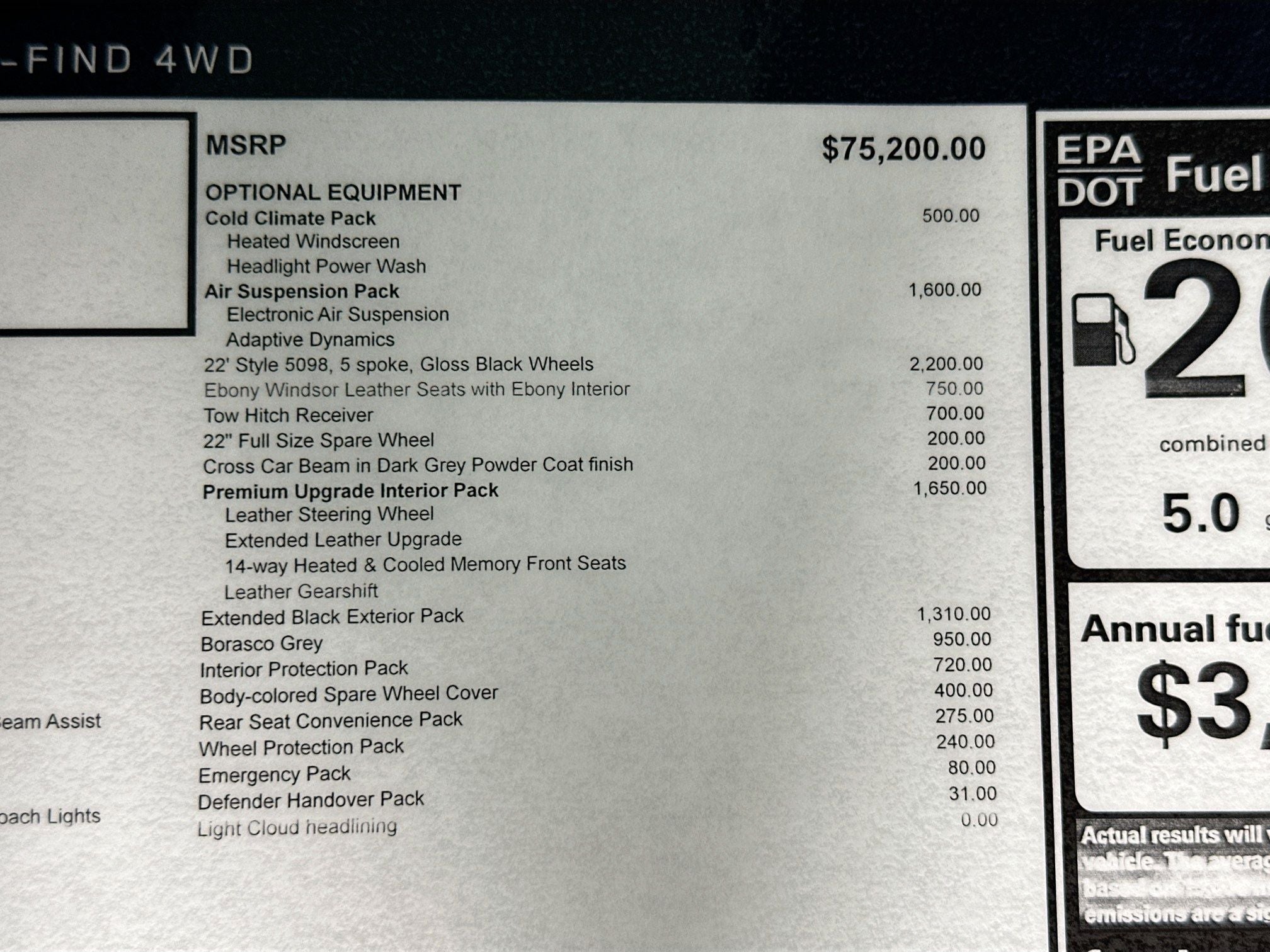 - Tires: 255/60R20