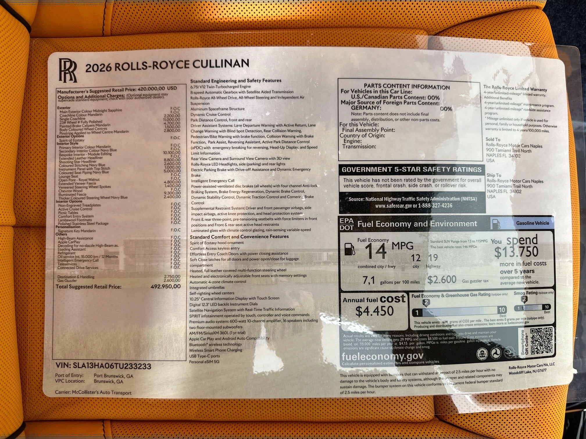 • MSRP: $492,950