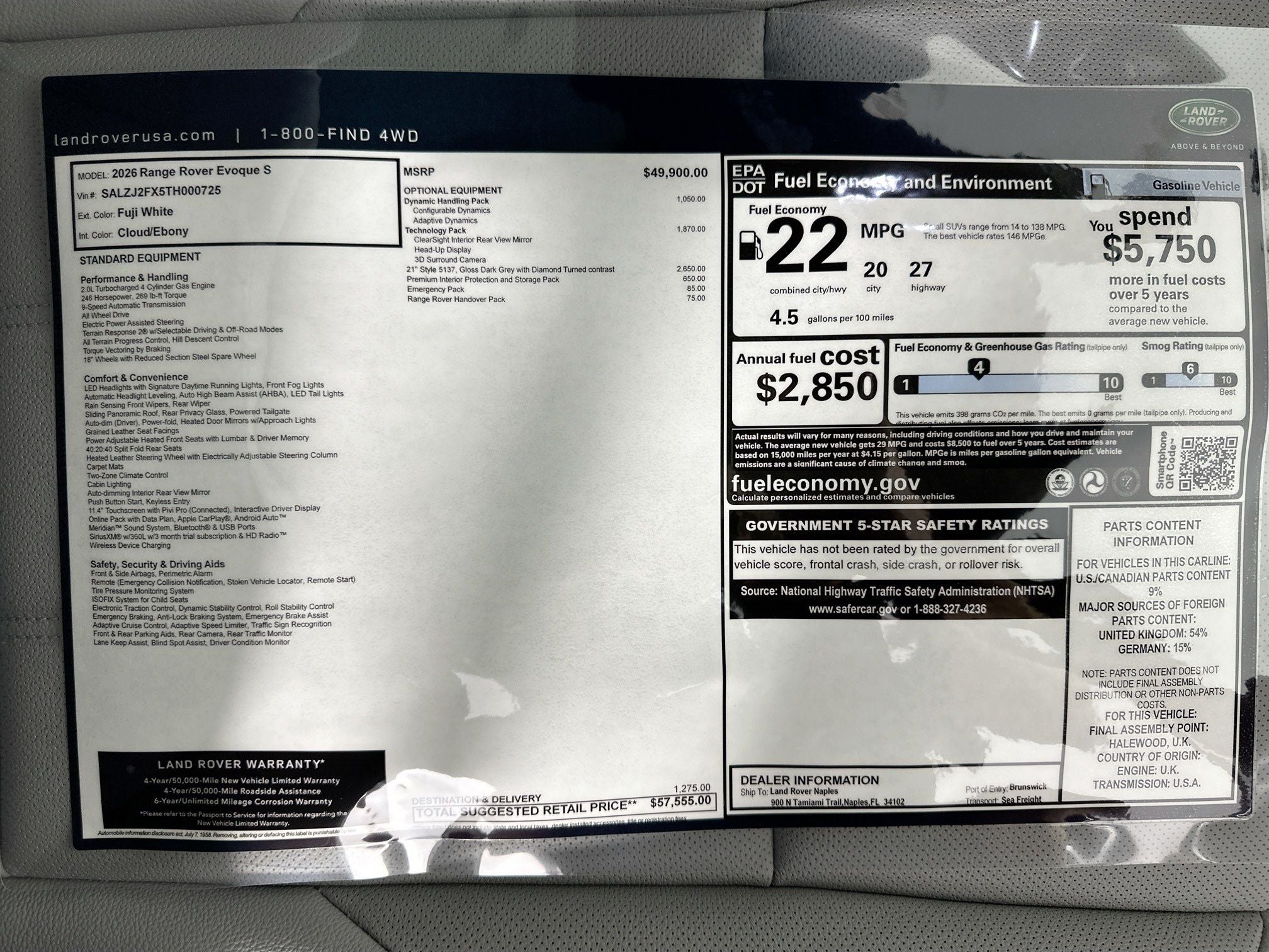 - Fuel Economy Est-Combined (MPG): 22